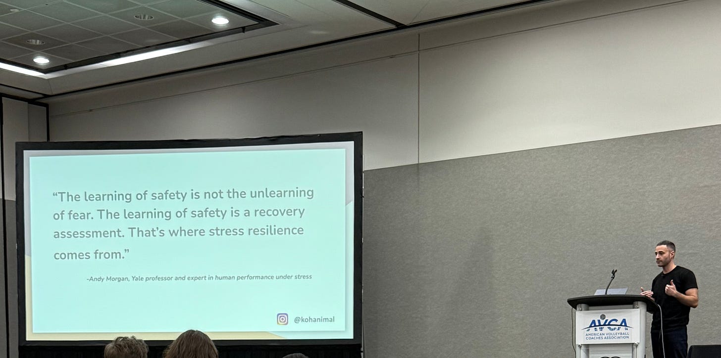 Just before the start of winter break, I flew to Kansas City to speak at the annual convention for American volleyball coaches. It’s quite an event, with thousands of attendees; a sprawling array of meet-ups, keynotes, and on-court educational sessions; and a jam-packed exhibit hall showcasing everything from the latest in uniform technology to massage therapy.